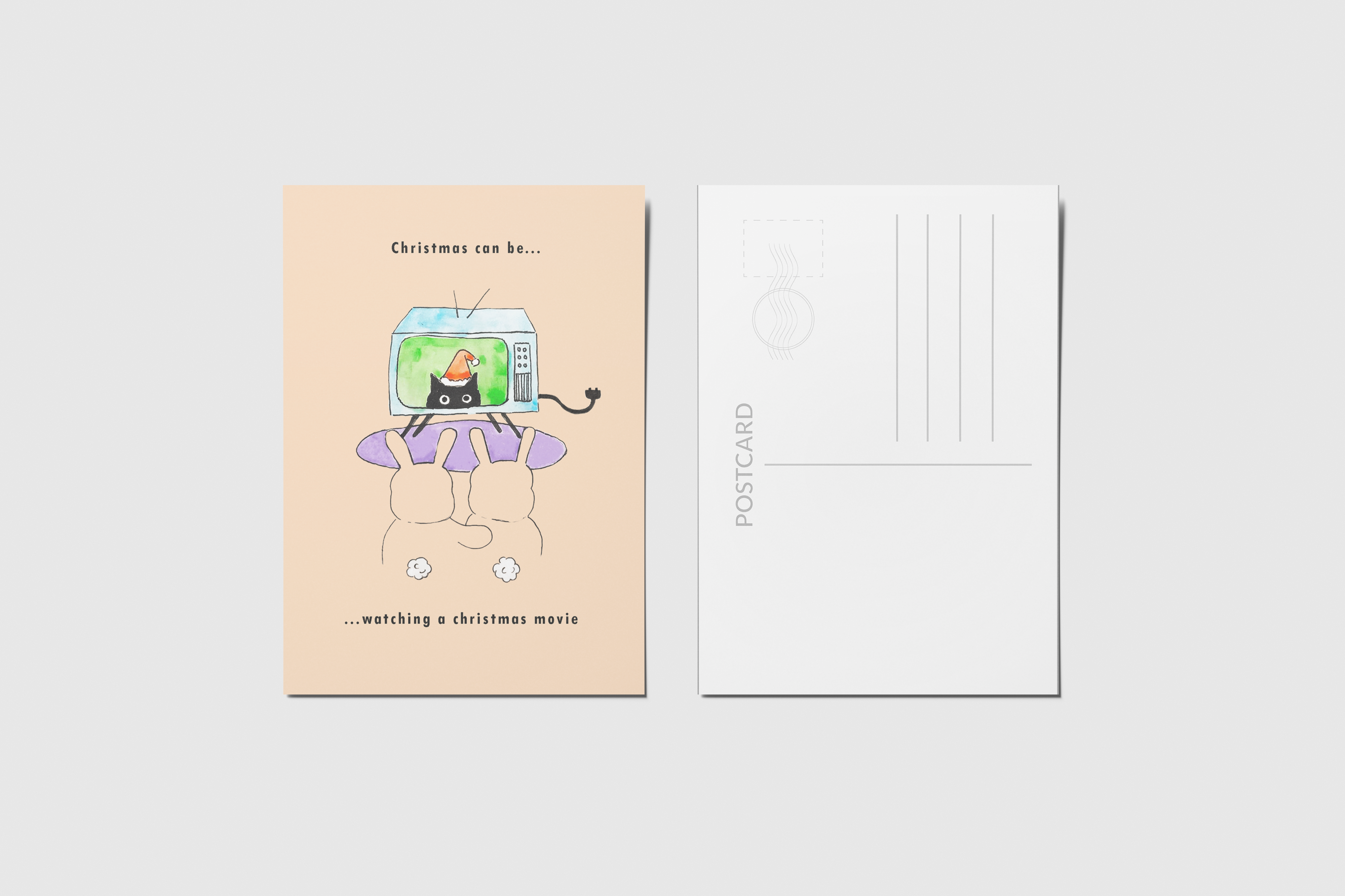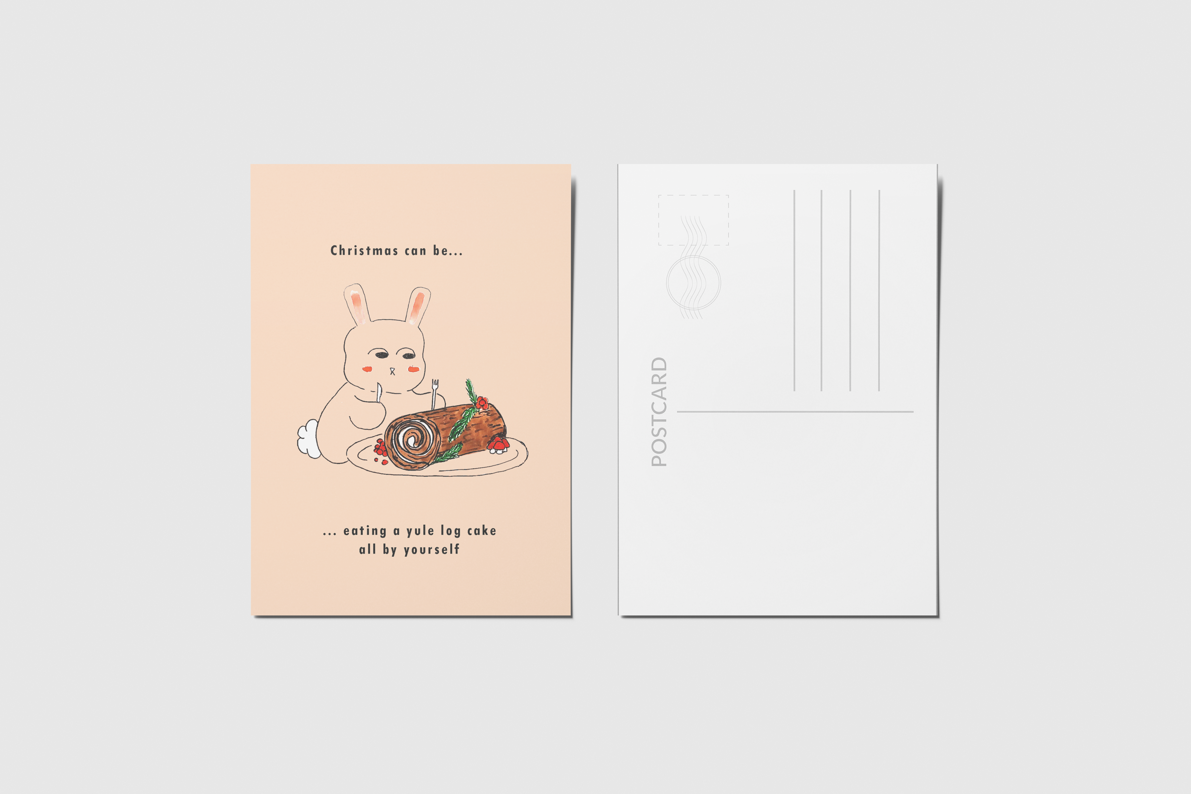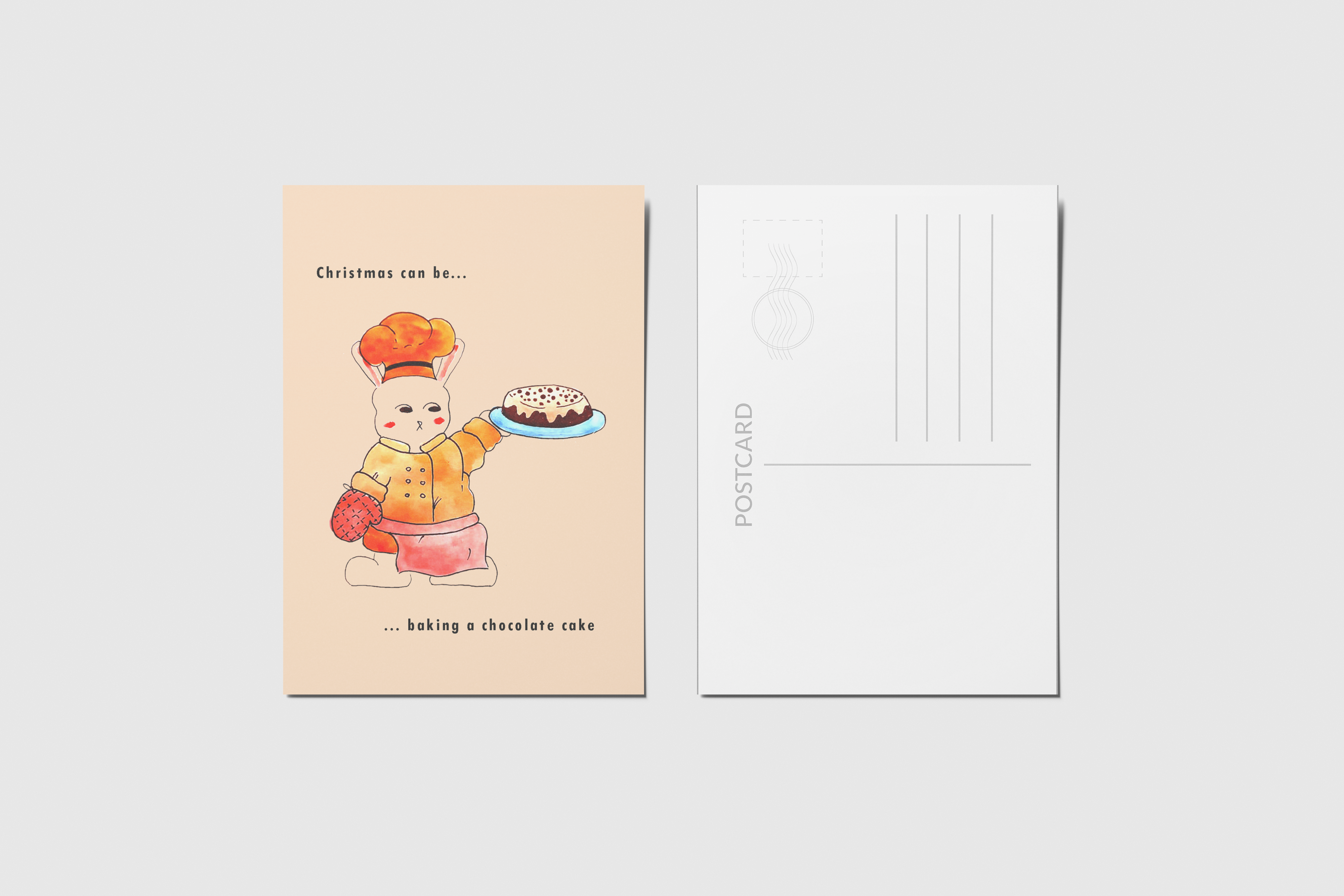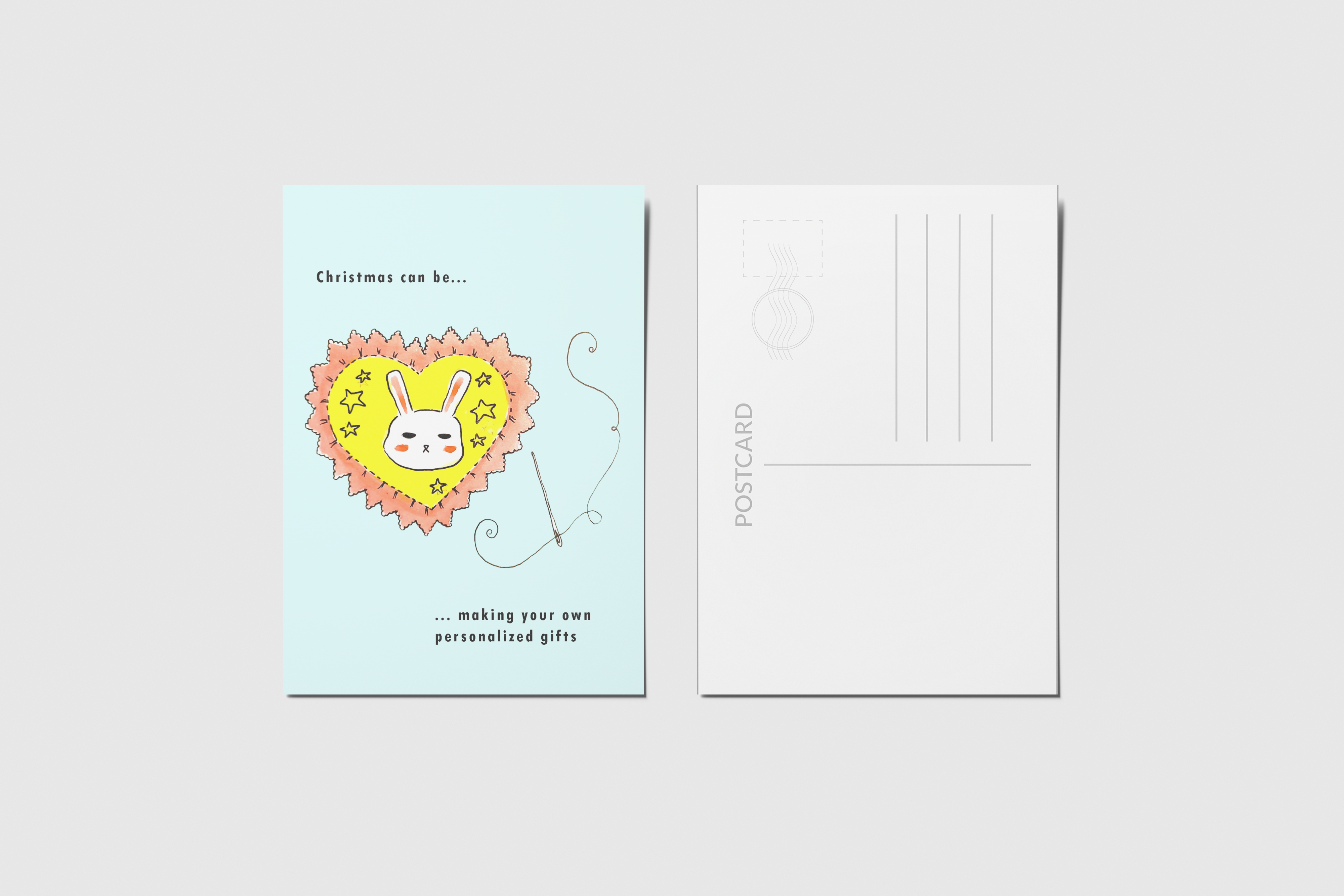 No âmbito do módulo de Editorial do curso de Ilustração da World Academy e com a ajuda do ilustrador Filipe Abranches, desenvolvi este conjunto de postais. Decidi fazer especificamente para a época natalícia, sendo que era essa a época em que nos encontrávamos. Cada postal tem presente a personagem de um coelho, bem como uma frase natalícia. O que une todos os postais é que todos são exemplos de diferentes significados que o Natal pode apresentar dependendo de pessoa para pessoa. Todas as ilustrações foram desenhadas e pintadas à mão.